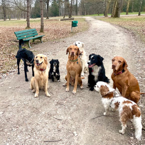 Ich hole die Hunde im Münchner Osten (Berg am Laim, Trudering, Haar, Vaterstetten, Neukeferloh,...) von zu Hause ab, gehe in nahegelegenen Gegenden in kleinen Gruppen Gassi (je nach Wetter fahren wir auch ans Wasser) und bringe sie anschließend wieder nach Hause. Nach vorheriger Absprache darf Ihr Liebling gern ohne Leine ausgiebig schnüffeln, erkunden und mit seinen Freunden toben. Dabei achte ich trotzdem immer auf Ordnung im Rudel und die unterschiedlichen Bedürfnisse jedes einzelnen Hundes. Ich betreue Ihren Hund mit viel Liebe und Geduld, aber auch mit klaren, artgerechten Regeln. Das Hunde 1x1 wird bei jedem Spaziergang gefestigt. Ihr Hund ist bei mir in liebevollen und konsequenten Händen.